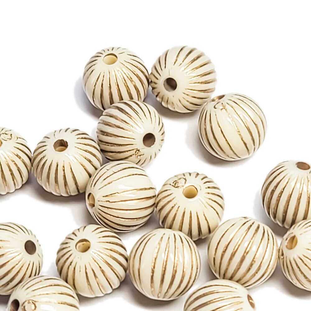 ベージュのビーズにゴールドのラインが入ったビーズ 10個セットです✨