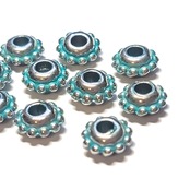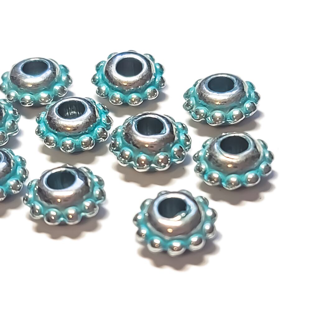 シルバーのビーズにターコイズカラーの塗装がなされていて、独特な雰囲気を醸し出しています。