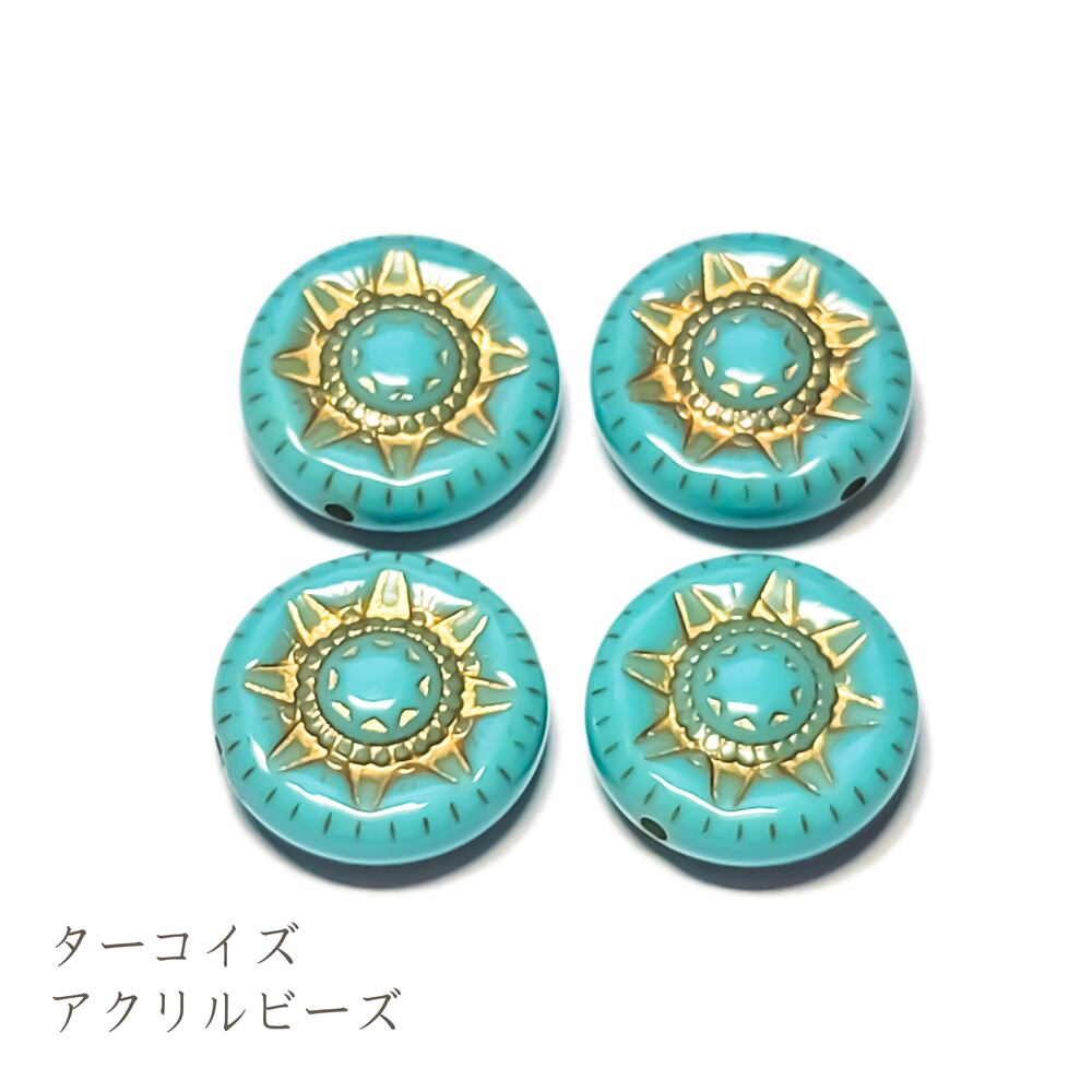 エスニック感たっぷりのフラットラウンド型アクリルビーズ 4個セットです✨