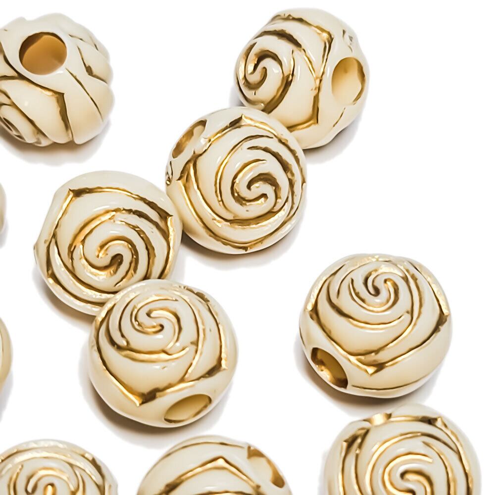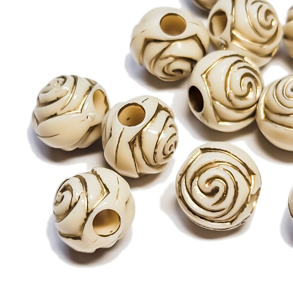 象牙を彫ったような薔薇型のアクリルビーズ 4個セットです✨