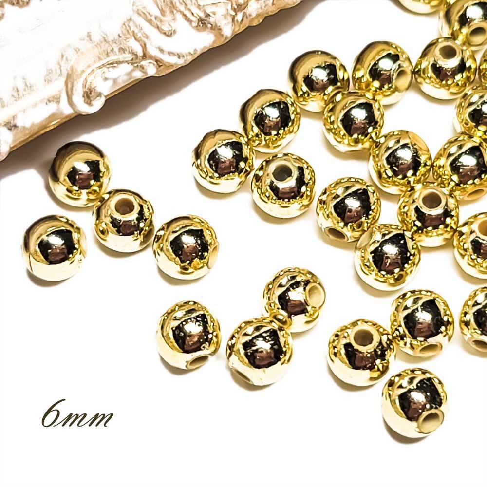 優しいライトゴールドがきれいなメタリック調のABSプラスチックビーズ ゴールド 6mm です✨
