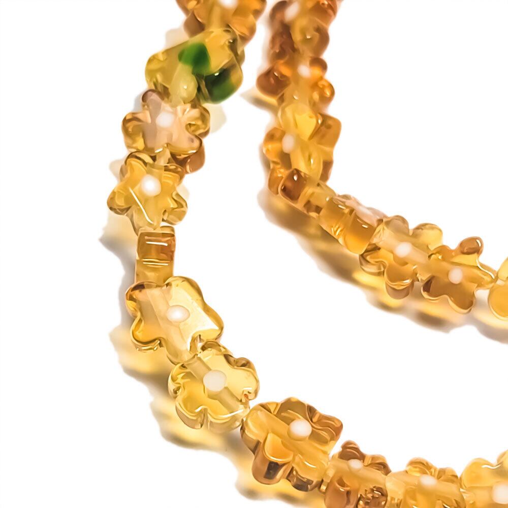 花びらが1枚ないビーズや変形の大きなビーズも混ざっています。